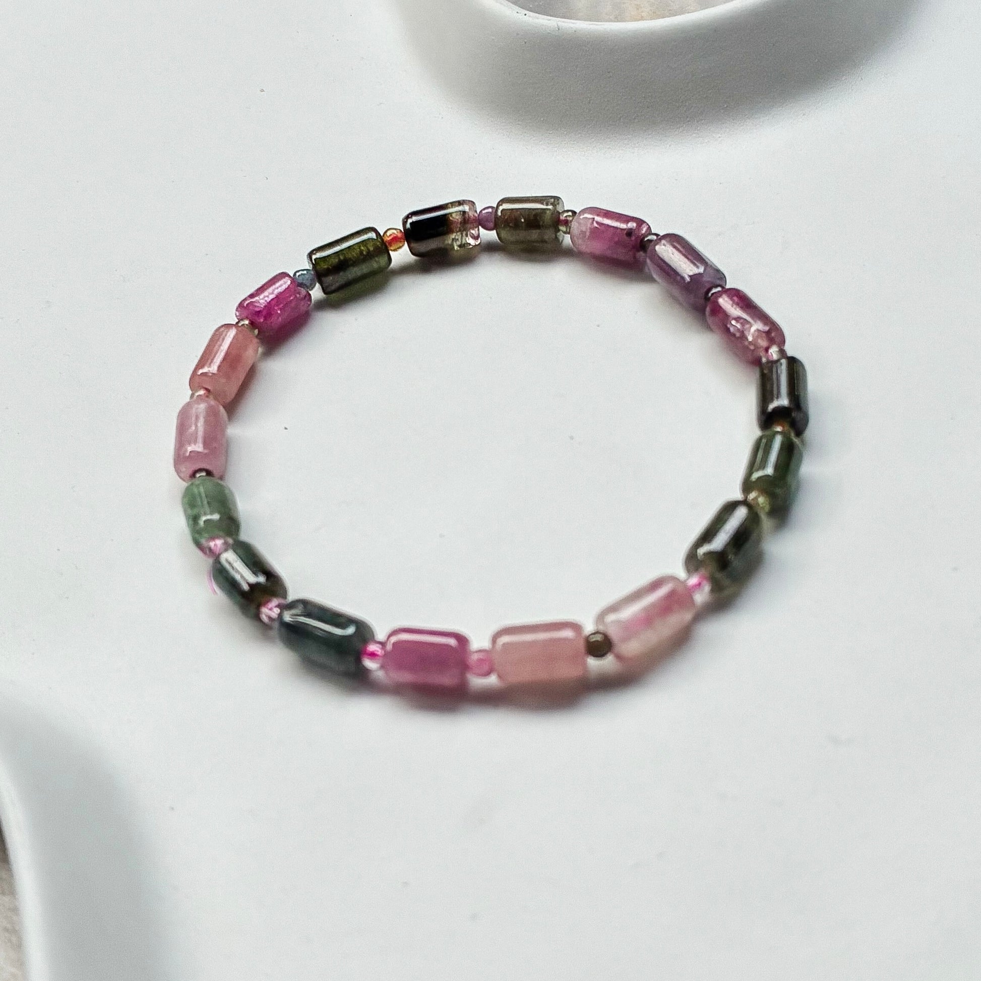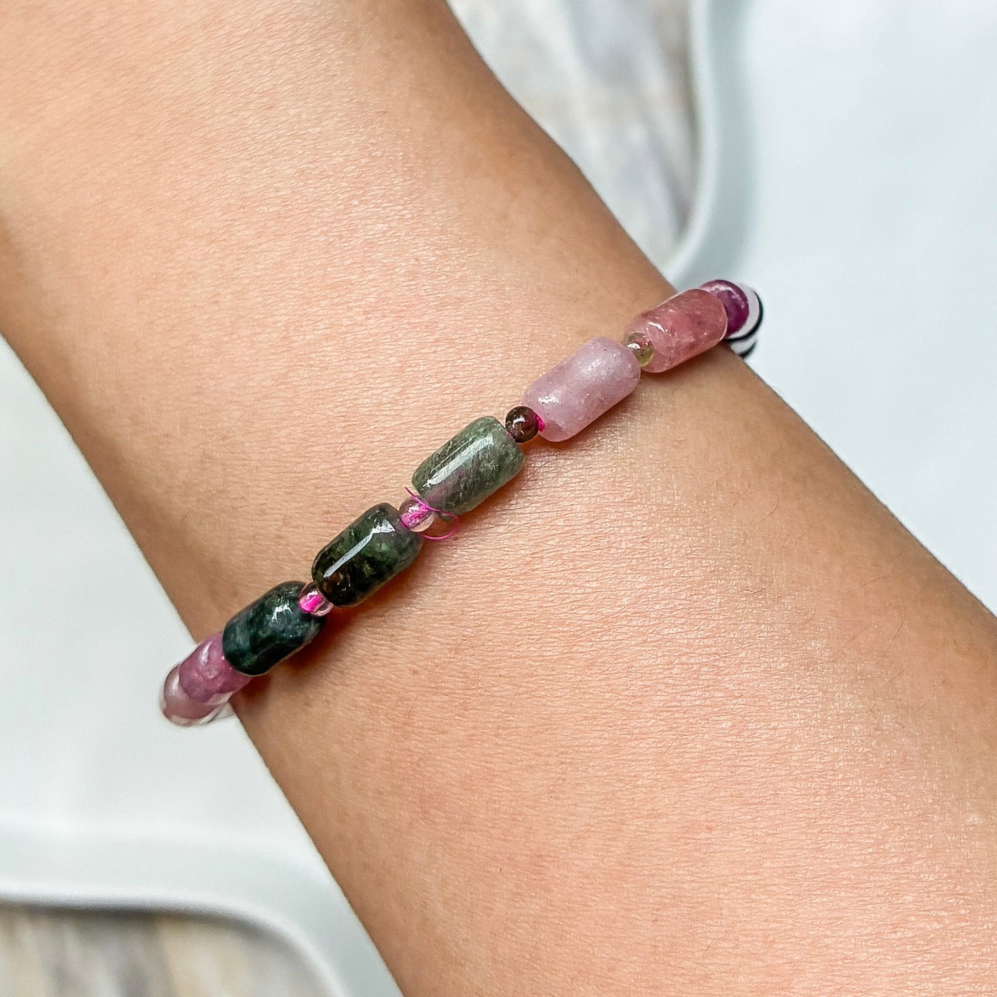 Hand-strung with lush shades of pink, green, and yellow Tourmaline, this best-loved bracelet is a symbol of emotional healing and energetic protection. Tourmaline is known to shield against negativity, support the heart chakra, and promote joy, compassion, and grounded energy.