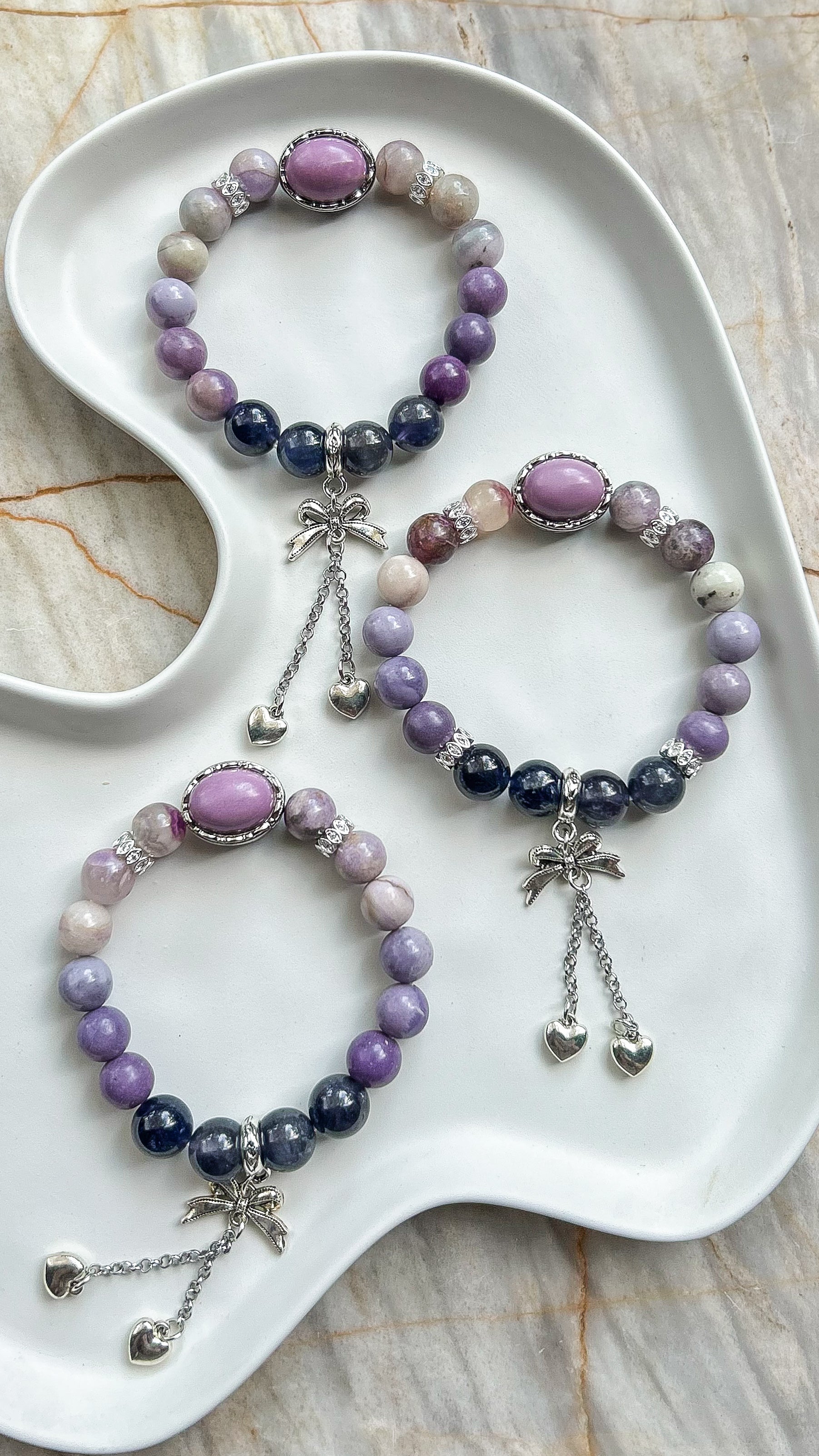 Purple mica and purple alashan agate (10nn) add a grounding yet empowering energy.